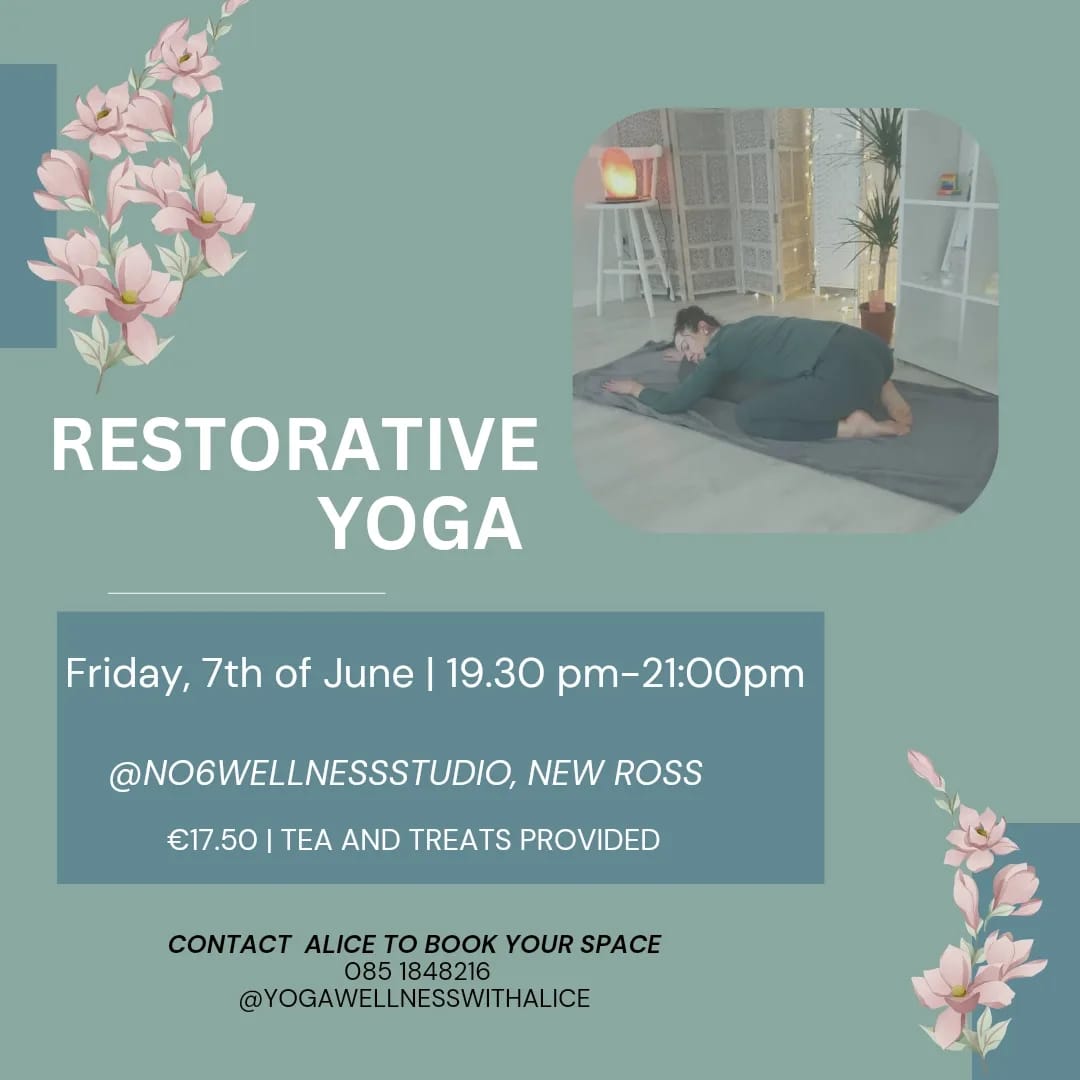 Book your space 💕and come join us Friday, June 7th @19:30pm for an evening of relaxation 😌 @no6wellnessstudio, New Ross.